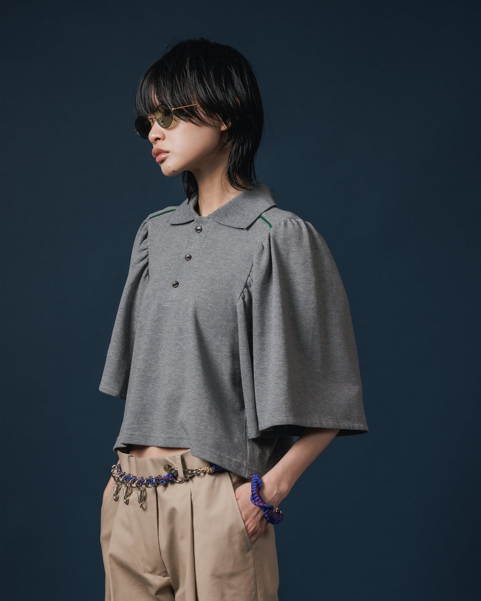 PUFF SLEEVE POLO-SHIRT (GRAY)