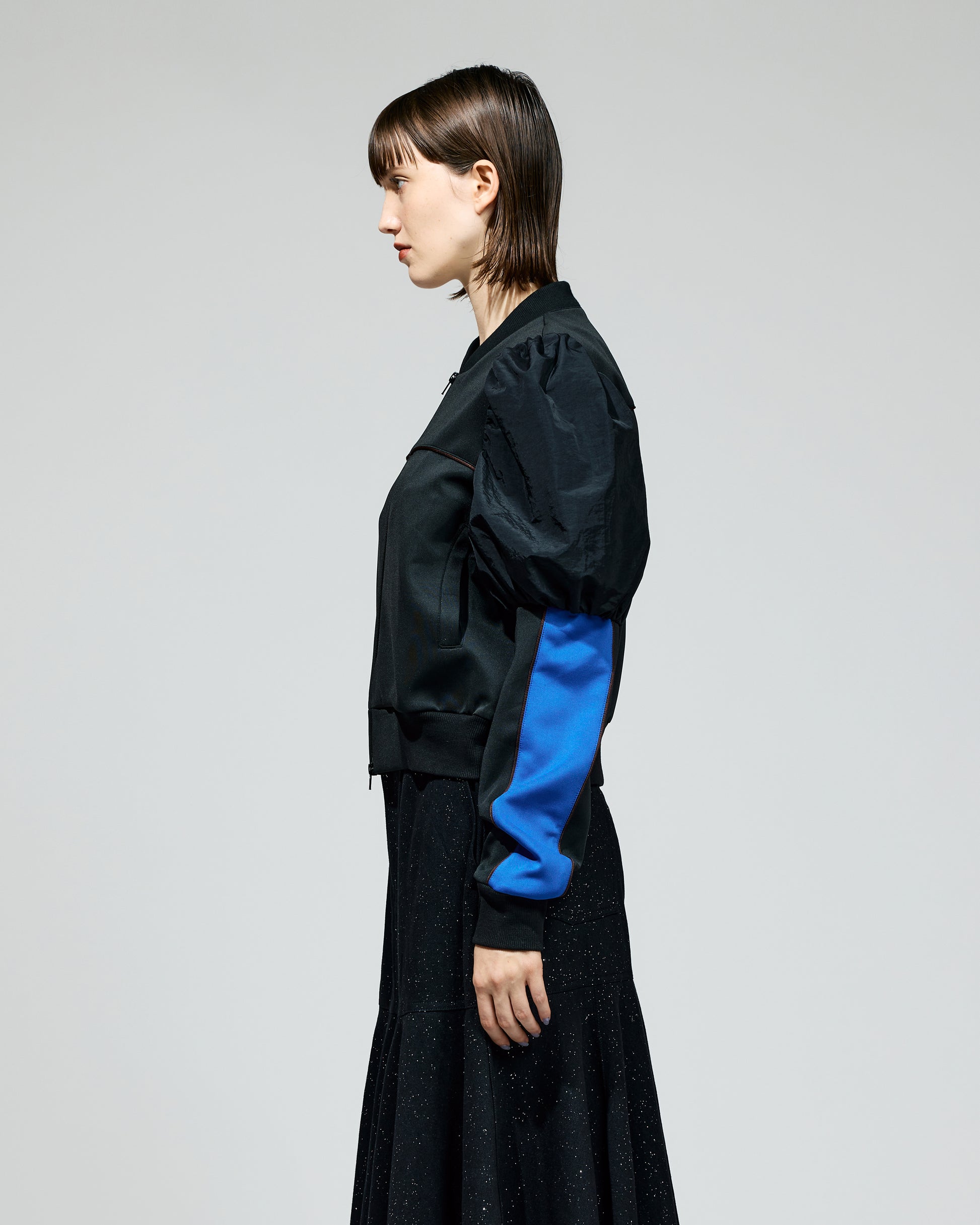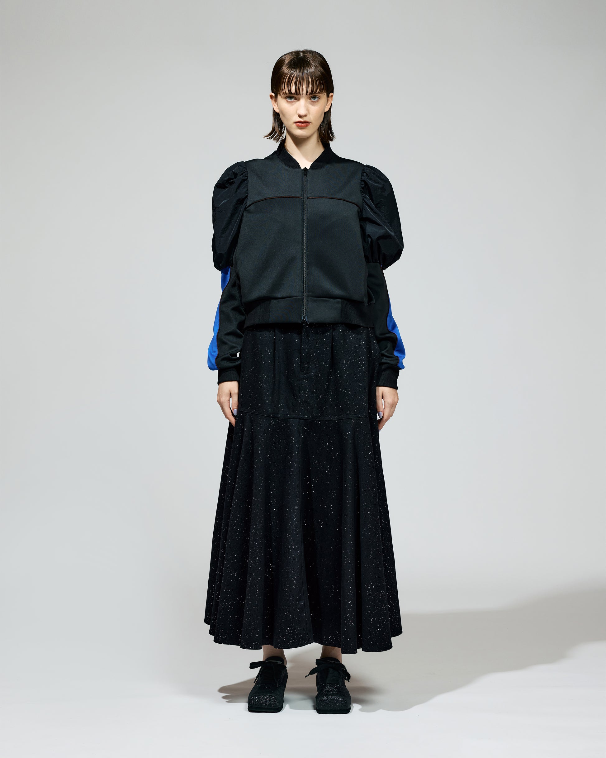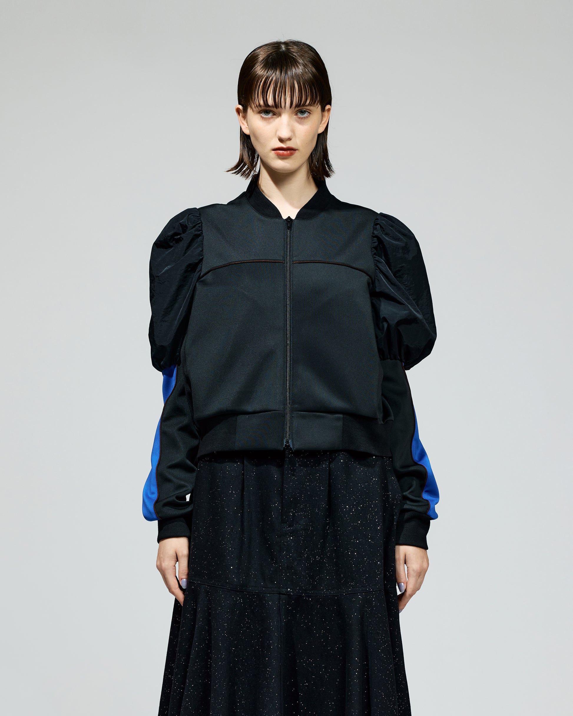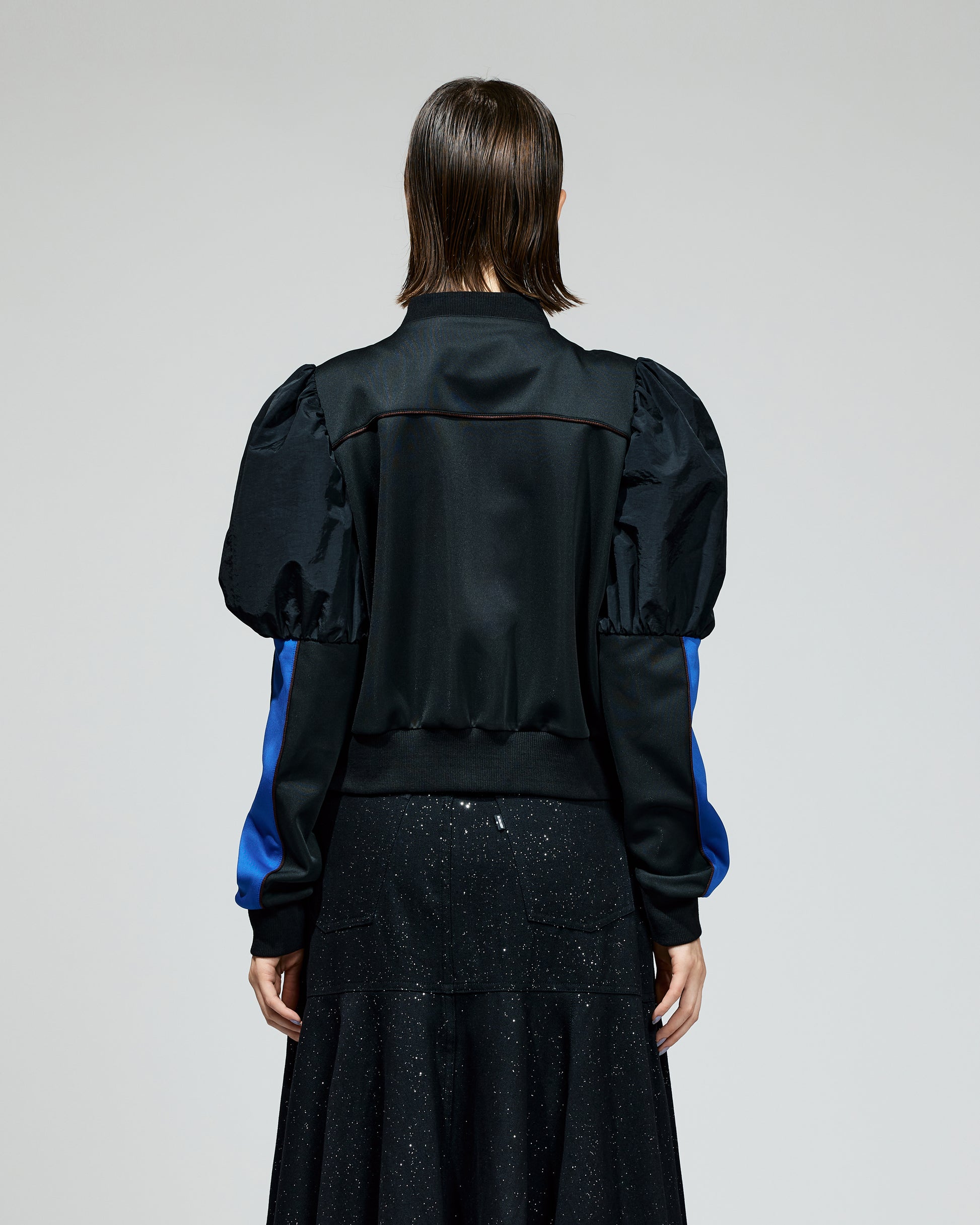 PUFF SLEEVE ZIP-UP JERSEY (BLACK)