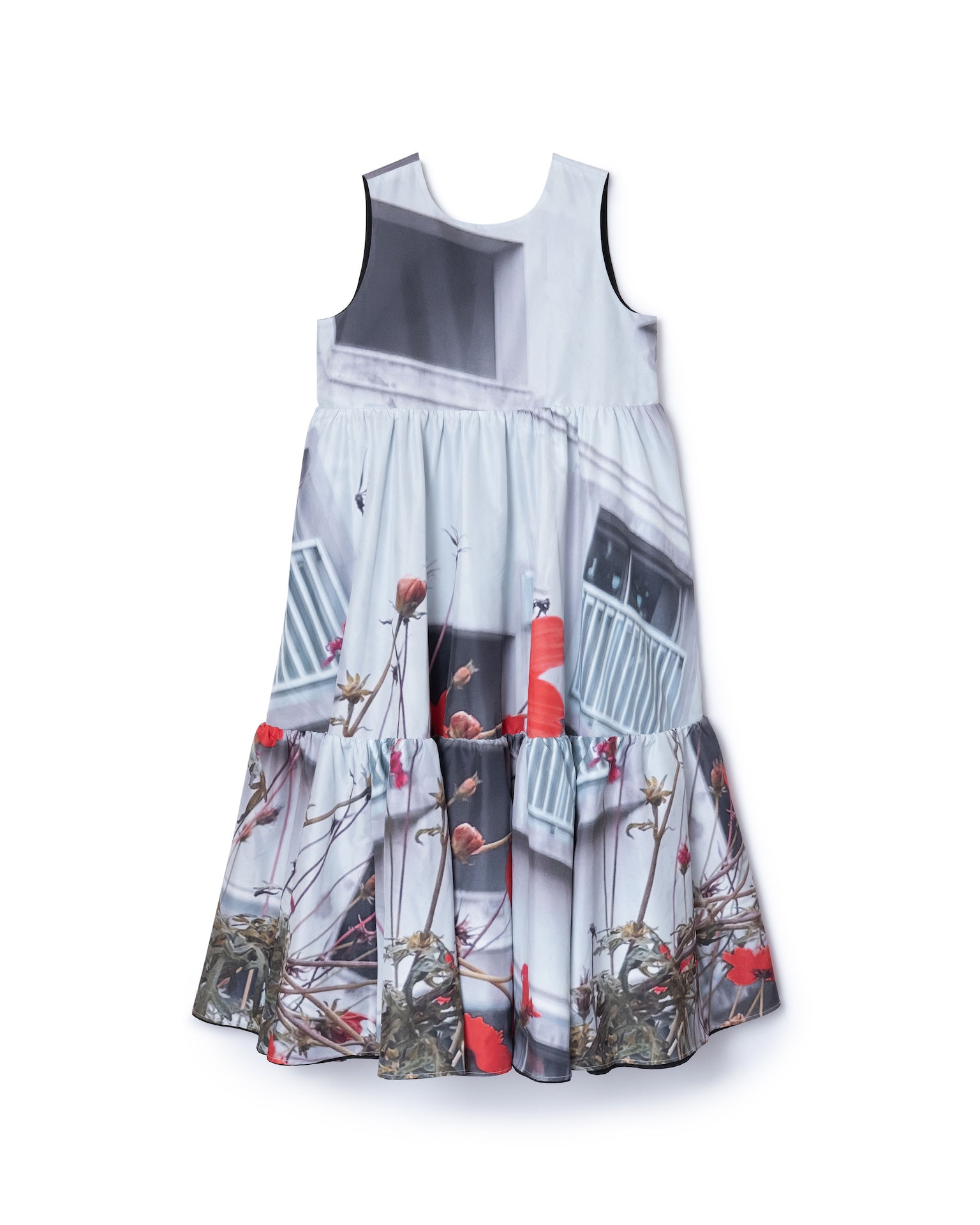 A面には転写プリント、B面は無地になっており、両面印象がかなり変わるので1枚で2枚分楽しめるワンピースです。