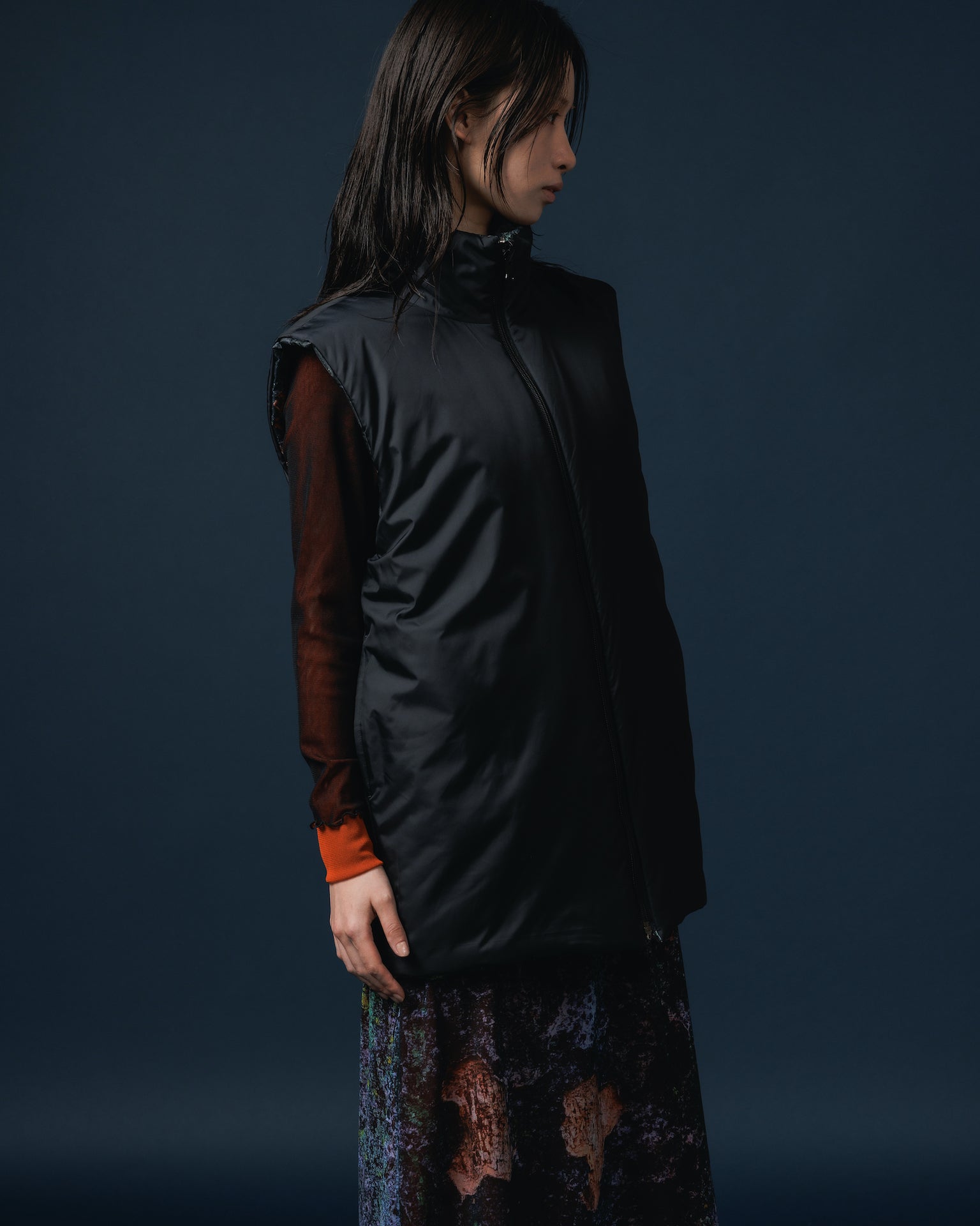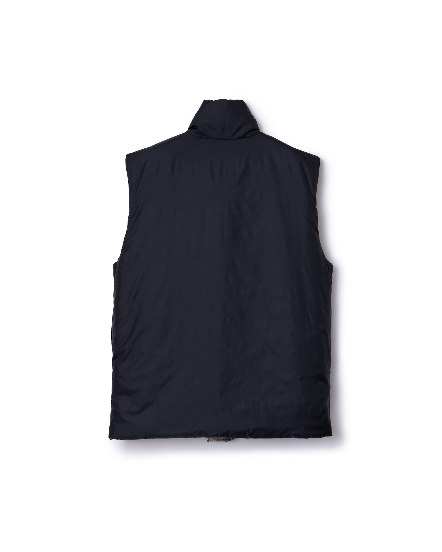 身頃に中綿がふんだんに入ったリバーシブルの中綿ベスト。
