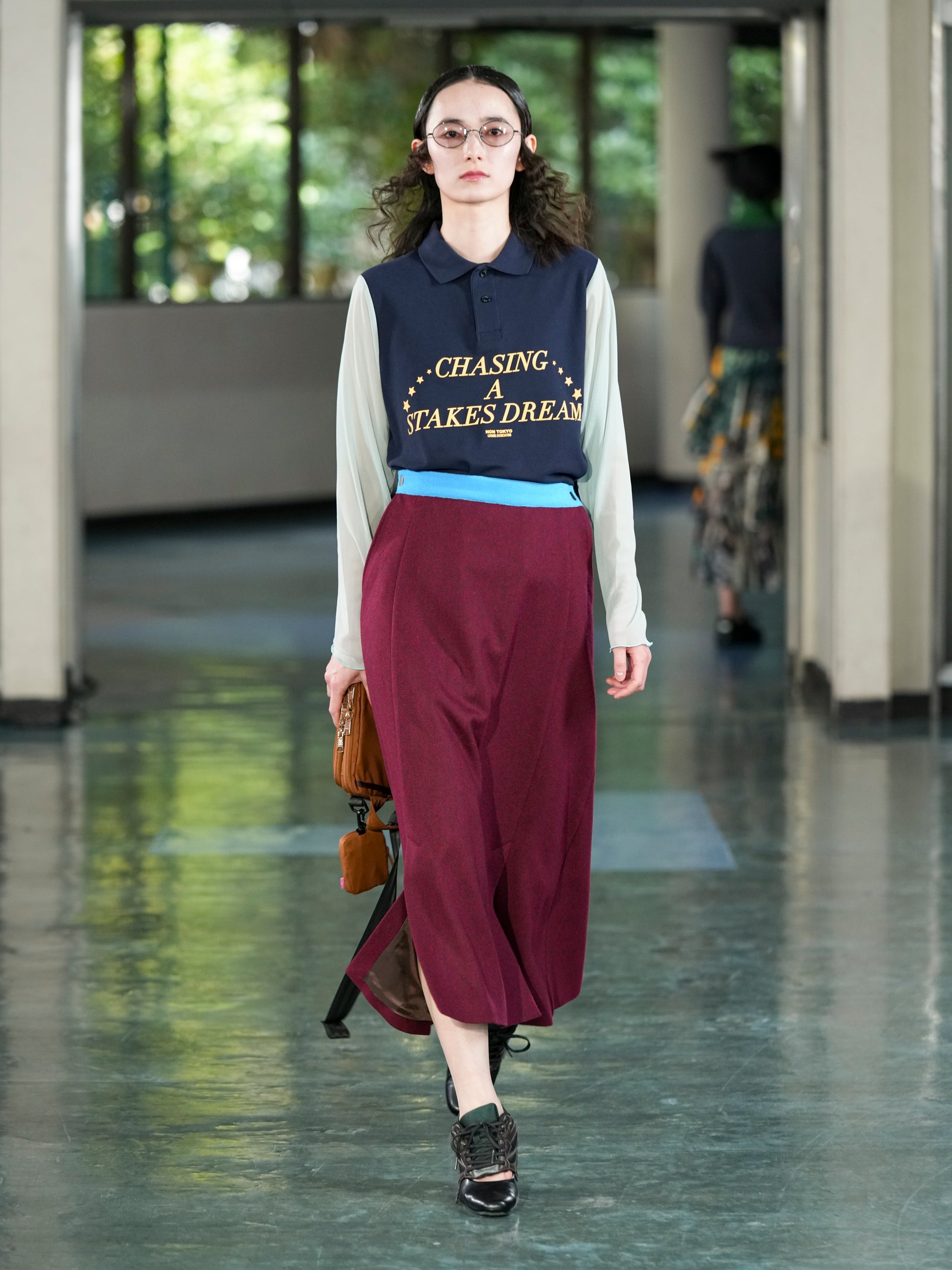 袖がシアー素材で出来たプリントポロシャツ。
