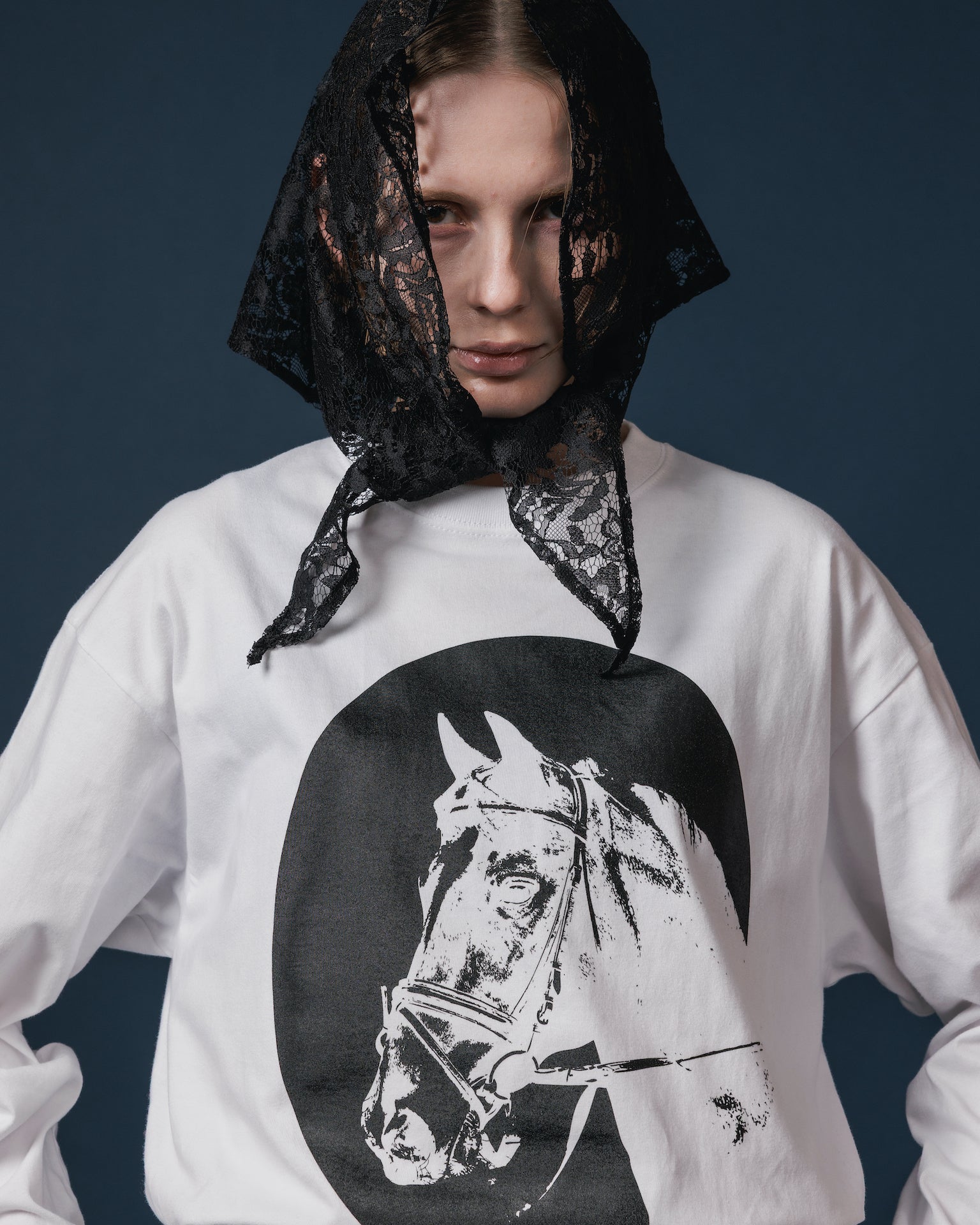 フロントには、今期のテーマを模した馬のプリントと、背中にはショーの日付けやテーマなどがプリントされています。