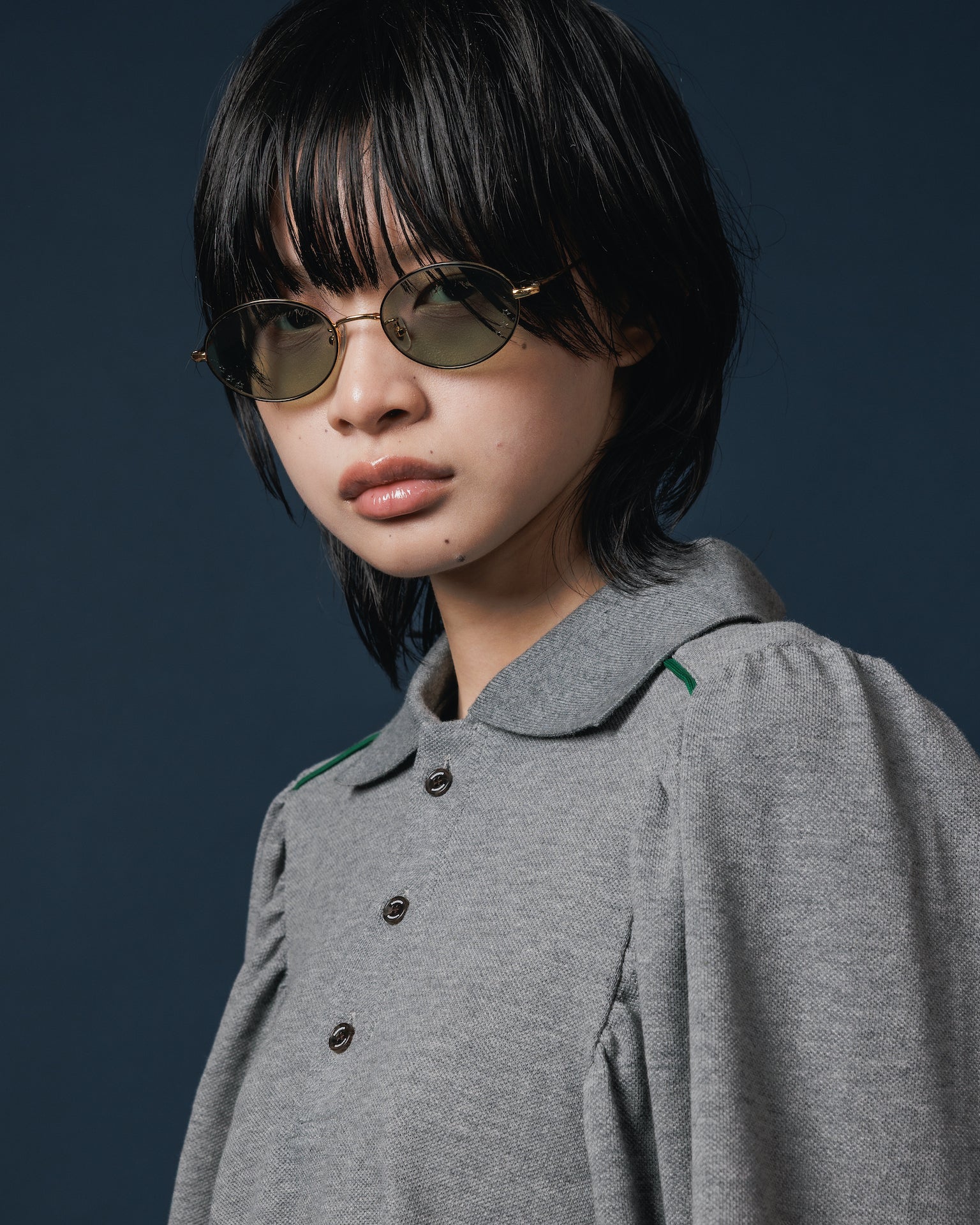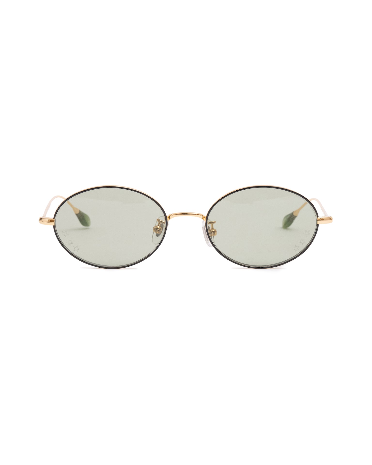 オーバル型のメタルフレームのカラーレンズサングラス。
