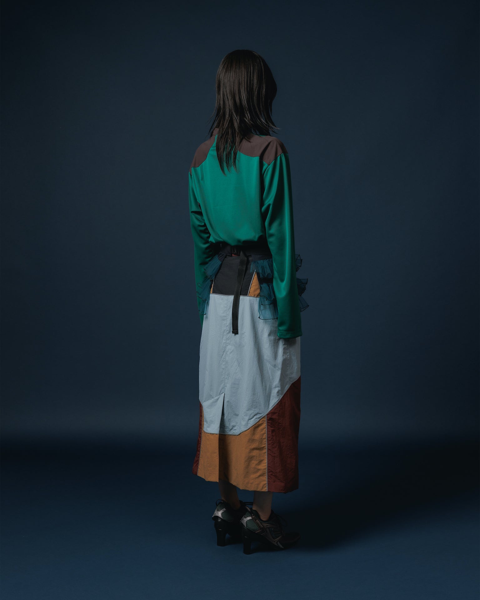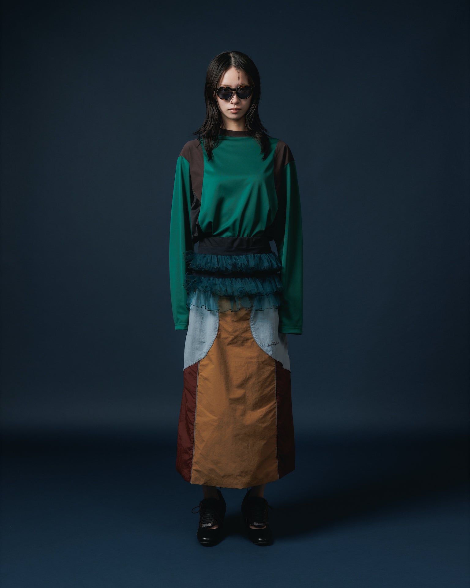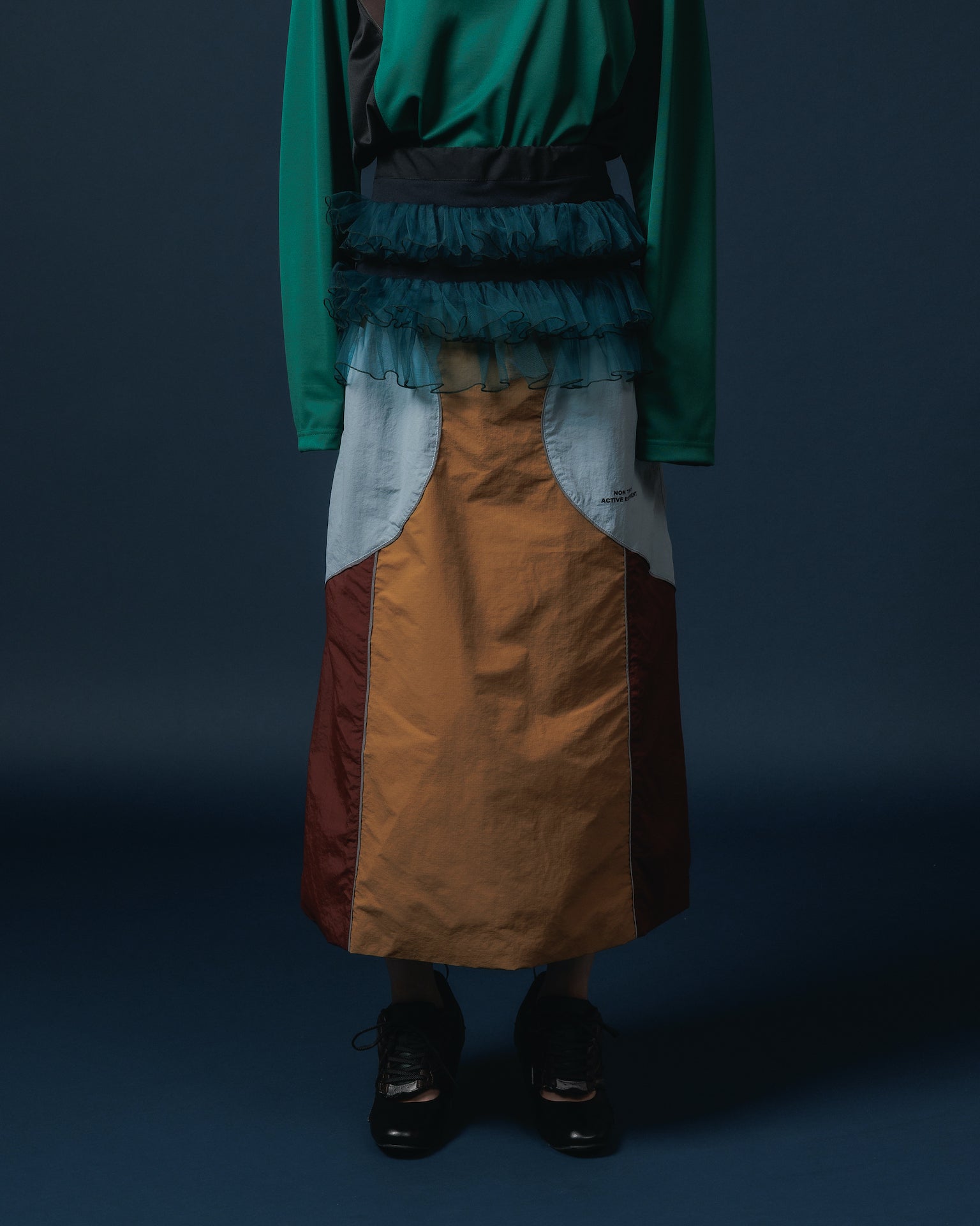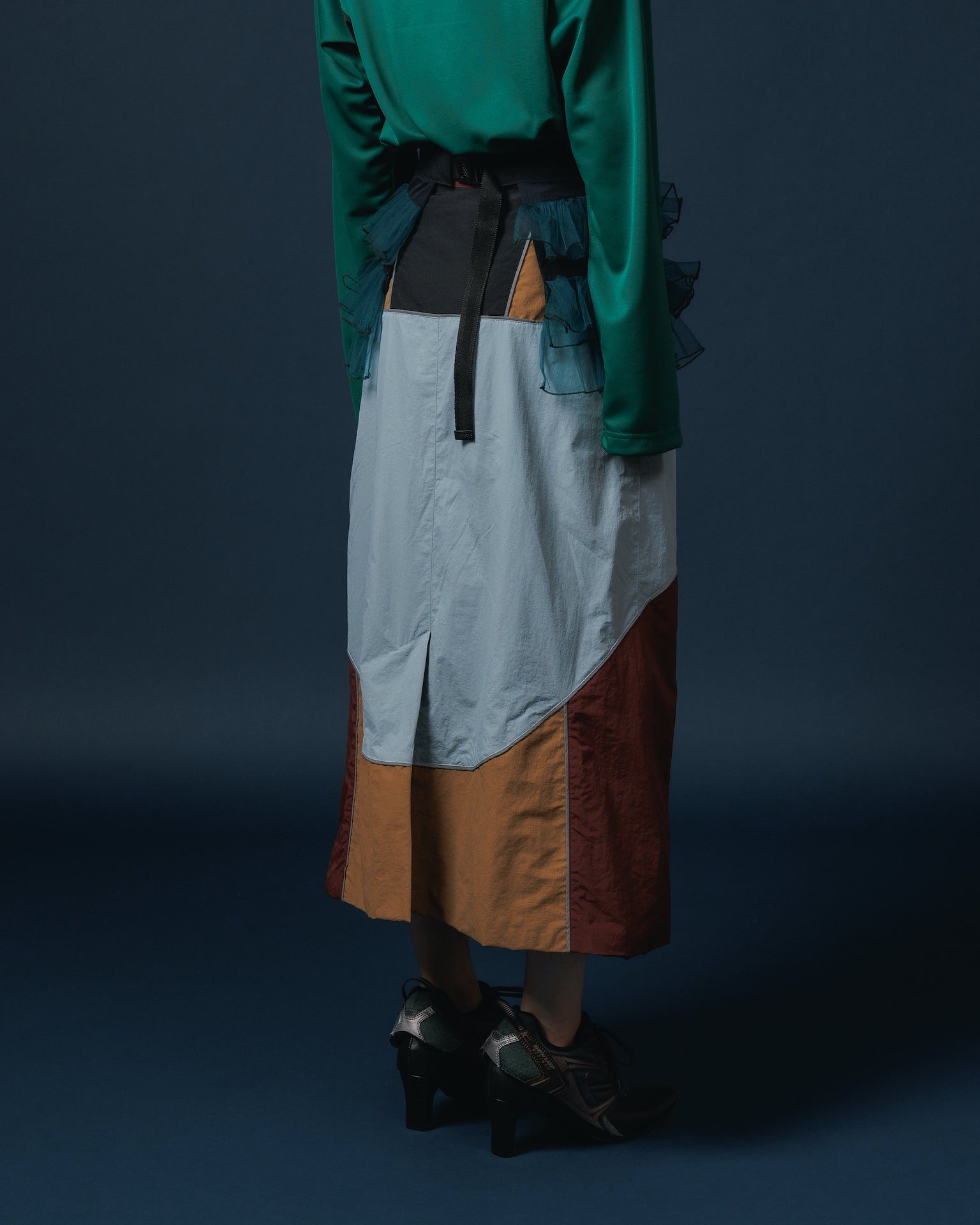 SWITCHING NYLON SKIRT (MUSTARD x BLUE)