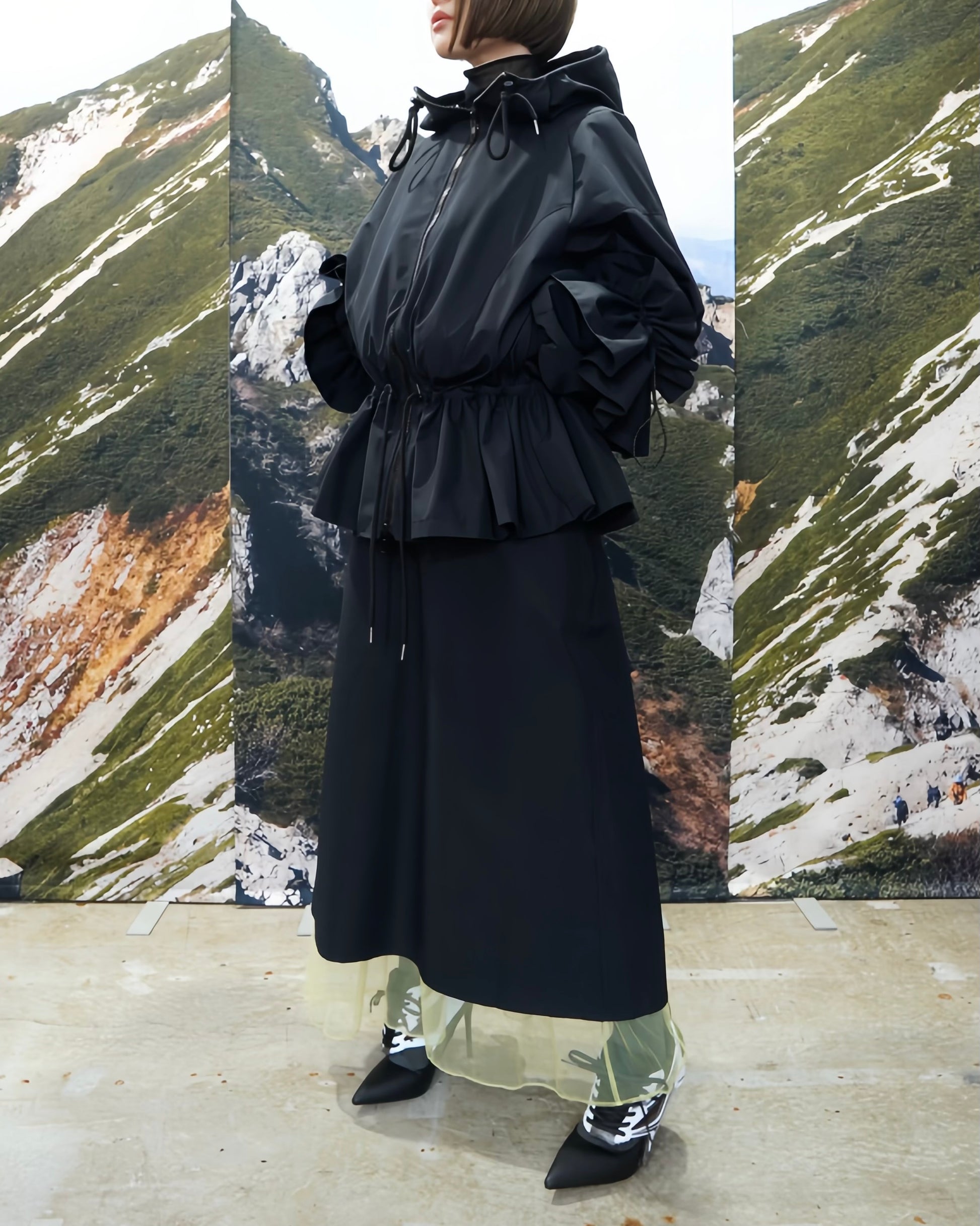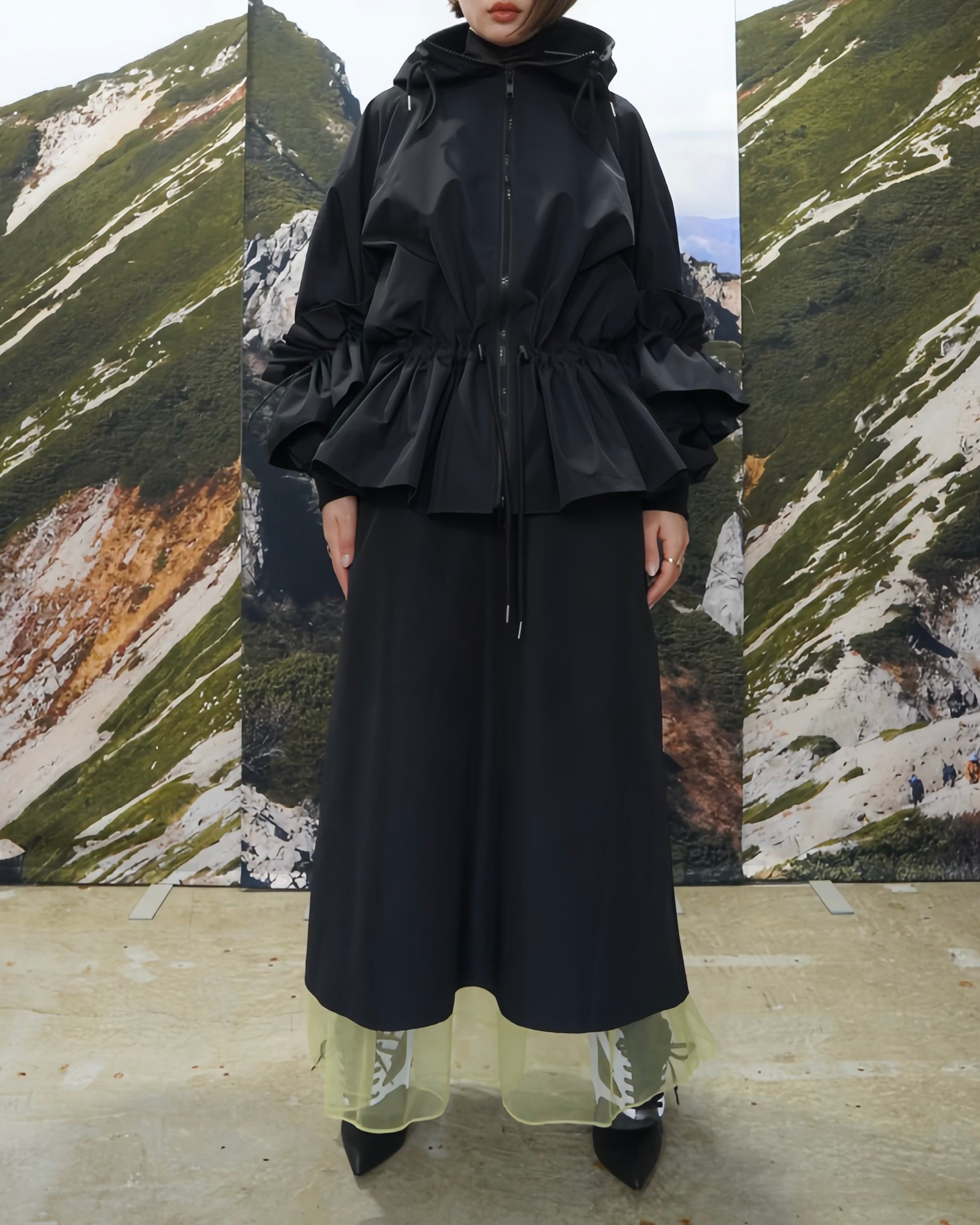 TULLE LAYERED NYLON SKIRT (BLACK)