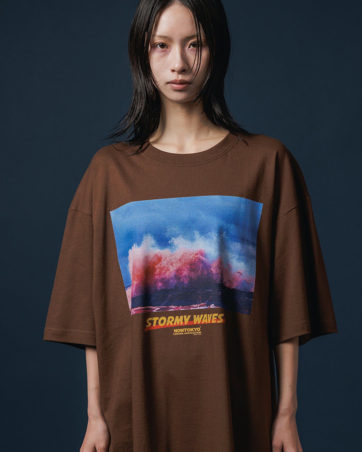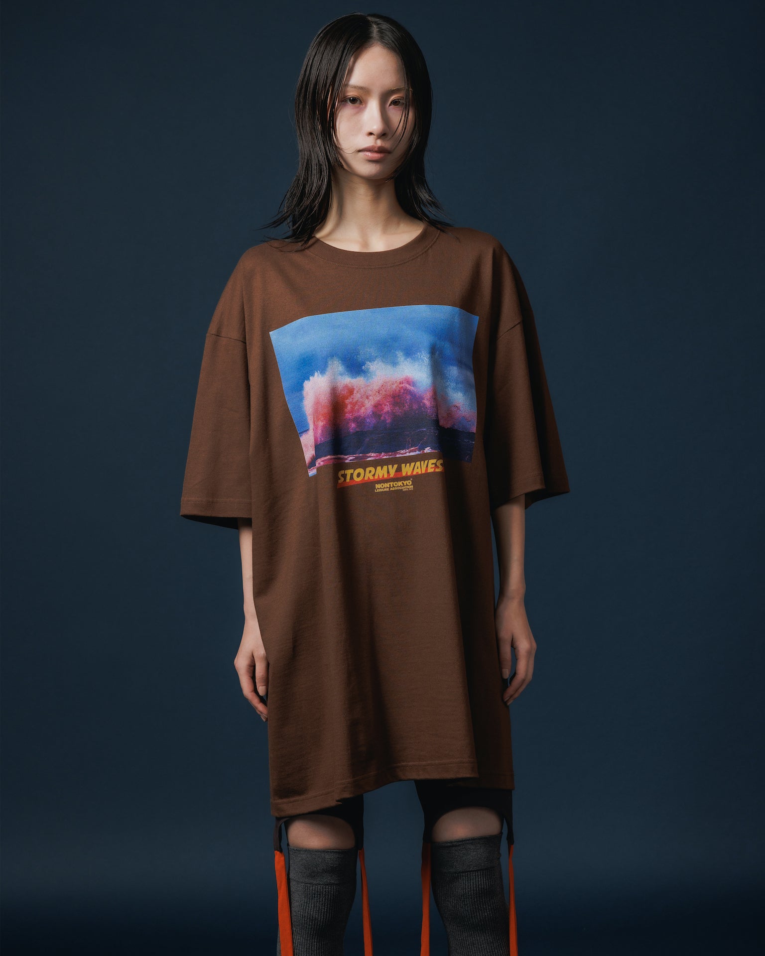 WAVE PRINT BIG T-SHIRT (BROWN)