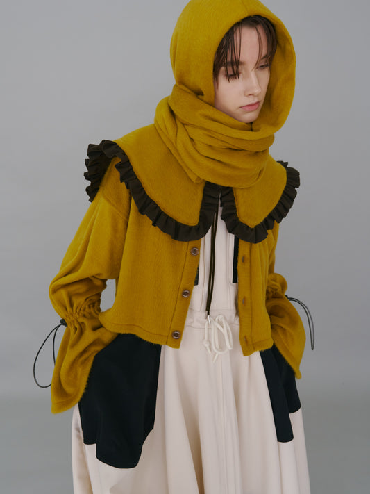 非东京/双面褶边领(棕色 x 芥末色)
