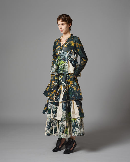 DIRECT PRINT RIB GATHER LONG SKIRT (FLOWER)