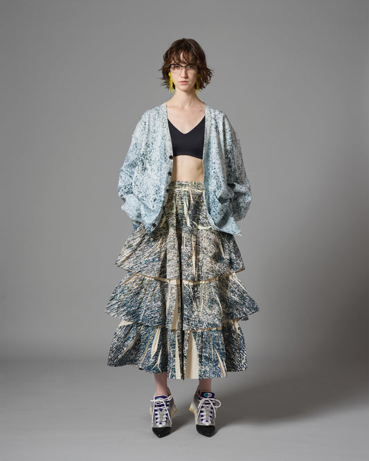 DIRECT PRINT RIB GATHER LONG SKIRT (NOISE)