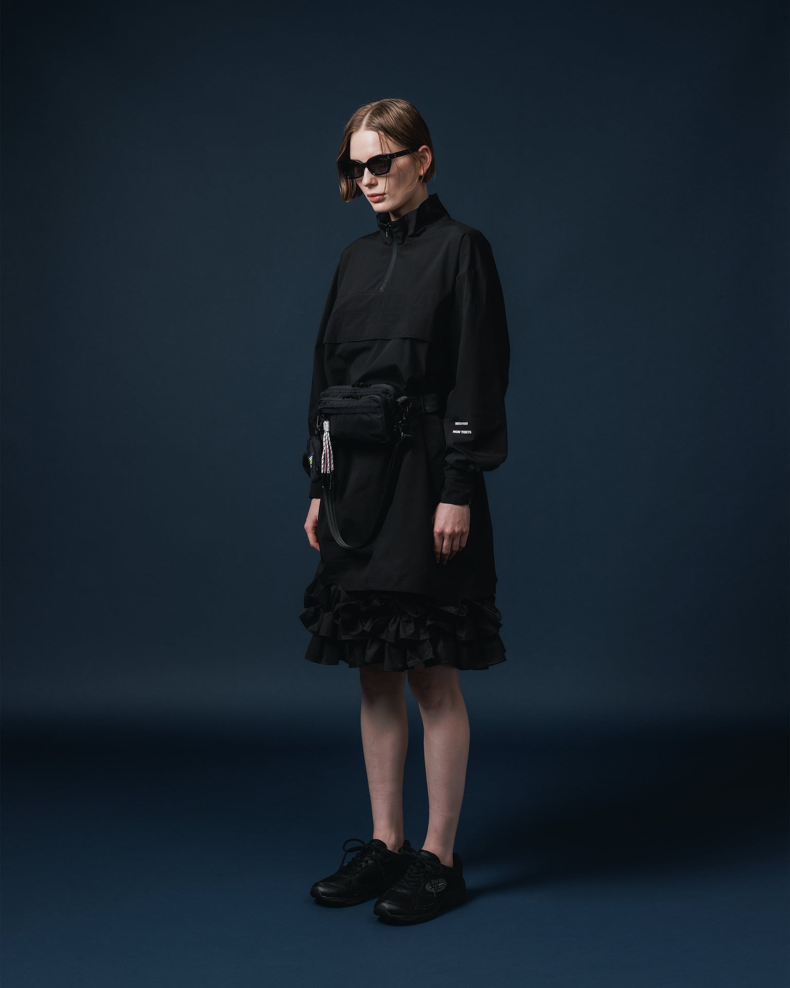 インナーにフリルがドッキングしたナイロンプルオーバーワンピース。