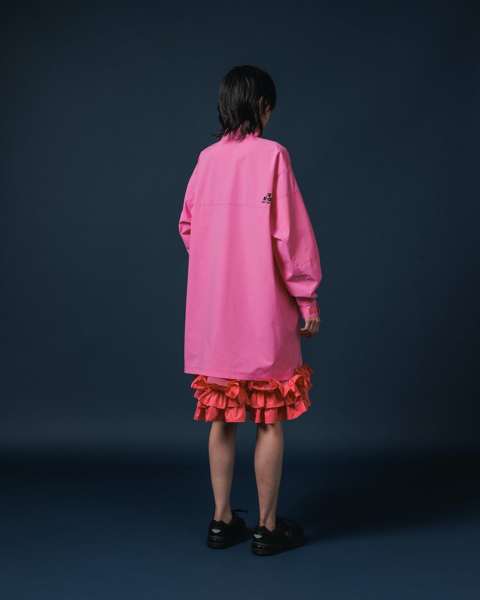 インナーにフリルがドッキングしたナイロンプルオーバーワンピース。