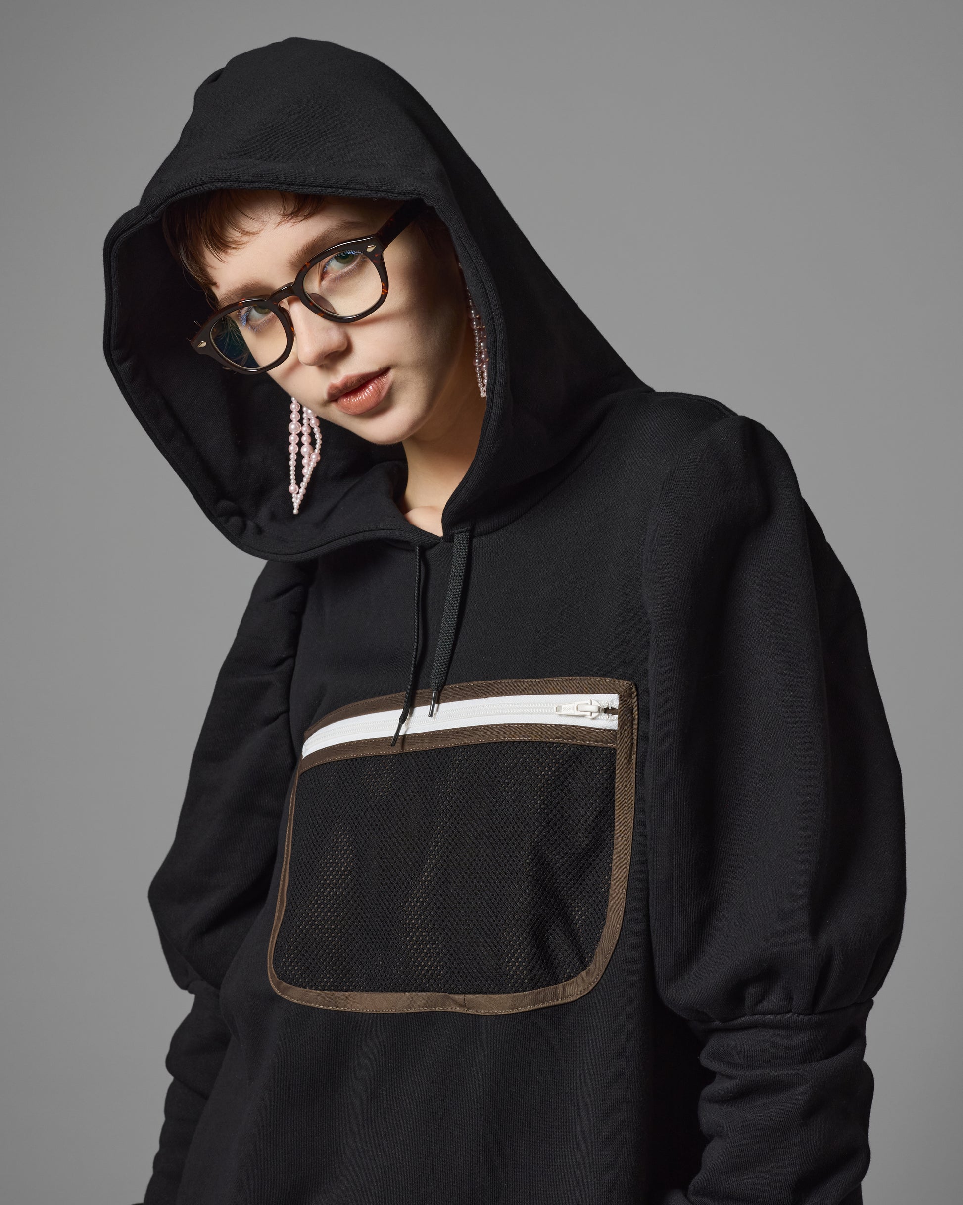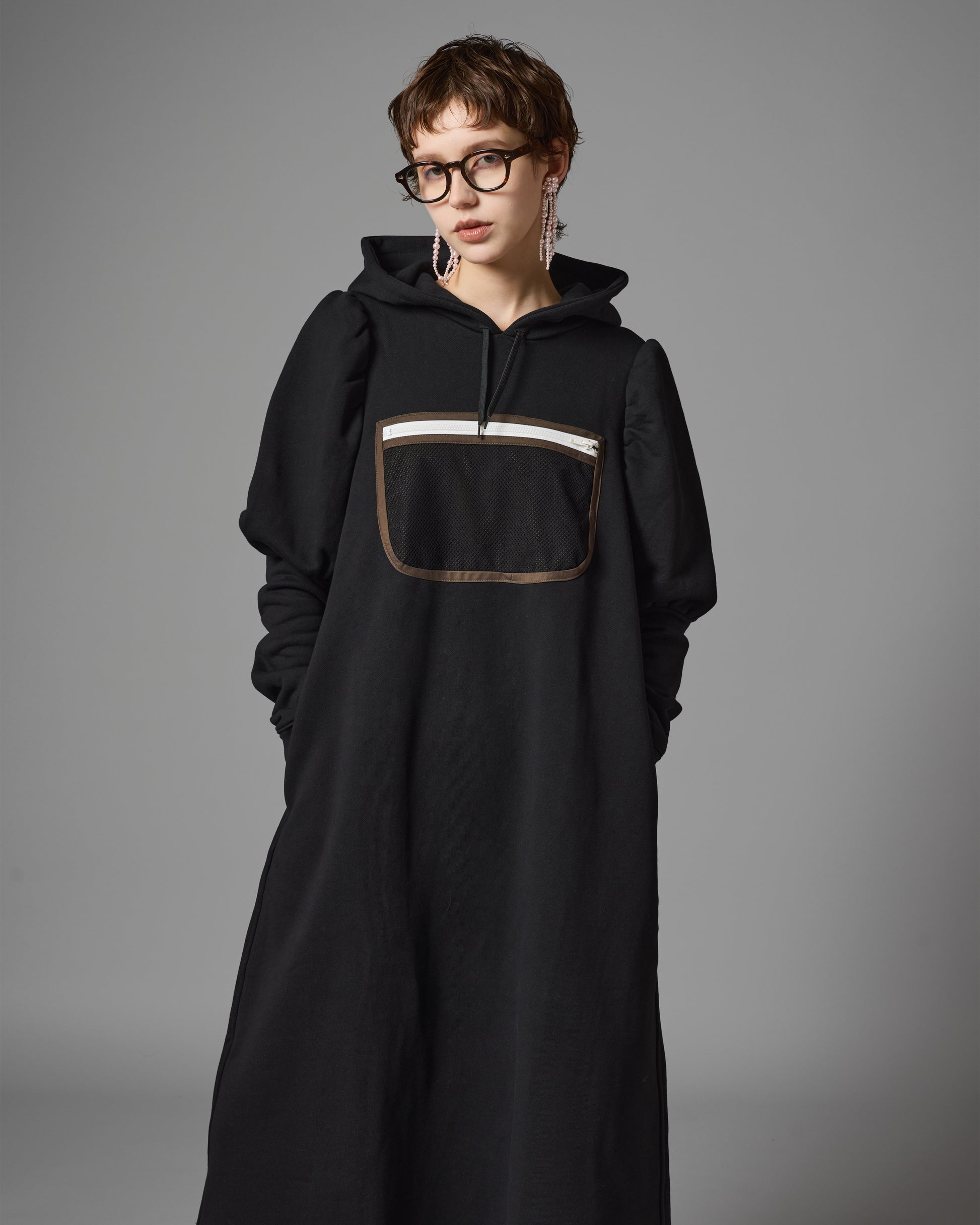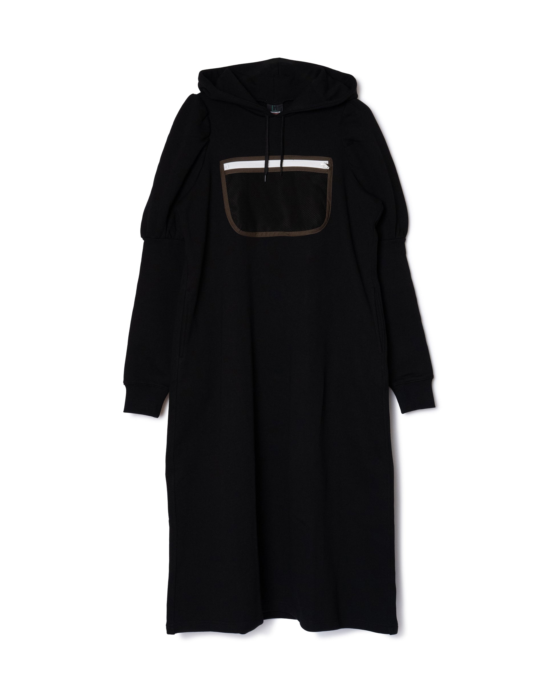 メッシュポケットが付いたプルオーバーパーカーワンピース。